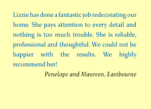 At Lizzie Wells Decorating we think proper communications are the secret to a successful working relationship. Written quotations are always provided for your approval, and work will not proceed until all materials, colours and costs have been agreed. You will always be consulted if any changes need to be made.